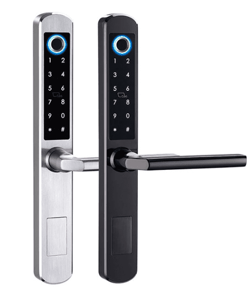 Prendi ilSerratura per porta sottile e intelligente con impronta digitale - FM 210 come esempio. Questo prodotto supporta il controllo tramite l'APP TUYA / TT Lock, con metodi di sblocco tra cui impronta digitale biometrica, codice, NFC, ID RF e chiavi meccaniche.